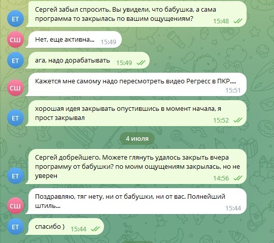 Удалось закрыть у себя довольно жесткую родовую программу, проработав несколько вариантов протокола, и узнать обстоятельства ее возникновения.