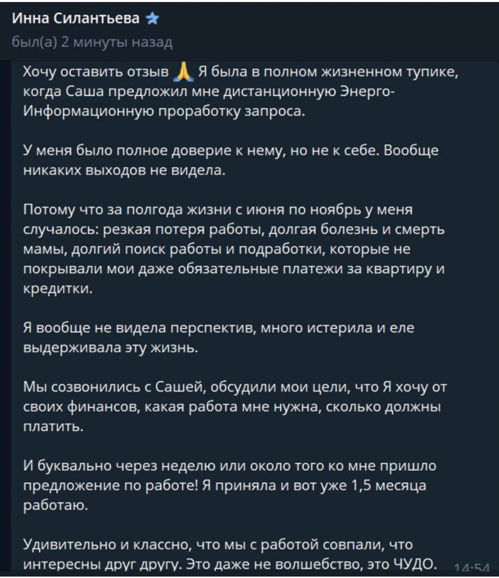 Всё, что произошло за это время, моя клиентка не считает случайностью, а воспринимает это как Чудо...