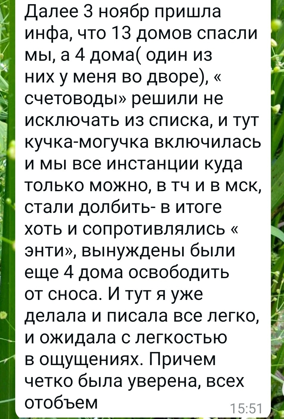 После облегчения состояния — опять был новый этап по борьбе за дома. Но на этот раз, все бумаги писались с лёгкостью в ощущениях и уверенностью, что всё получится.